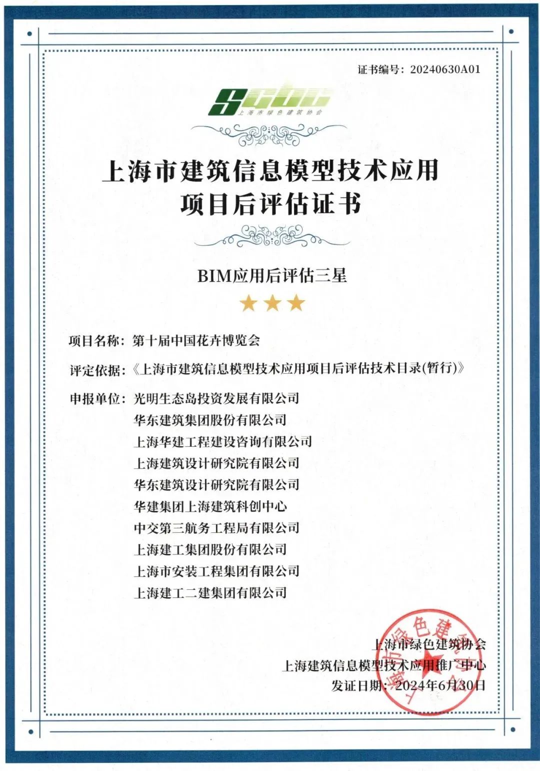 日前,第十届中国花卉博览会项目再次传来喜讯,顺利通过BIM应用后评估三星认证,成为了上海首个获奖项目。